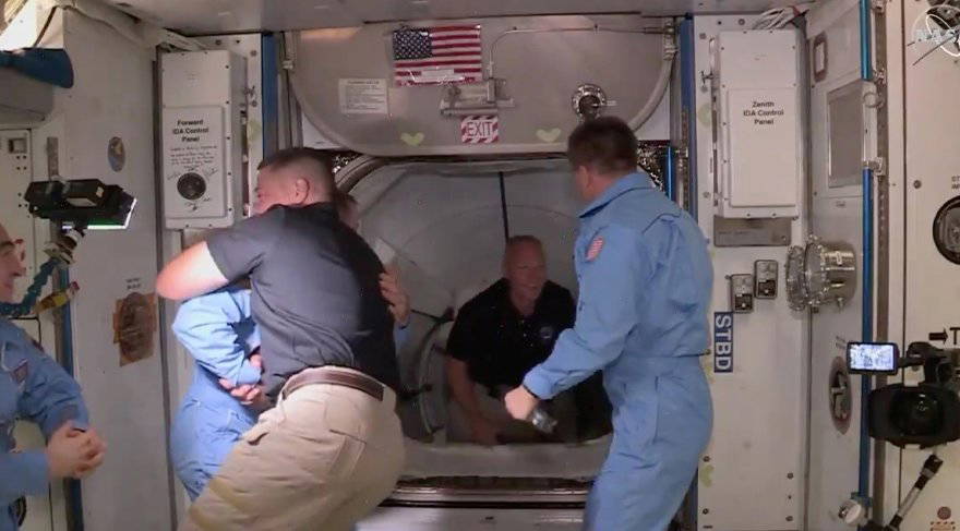 ABD'li ünlü girişimci Elon Musk'ın kurucusu olduğu SpaceX’in Falcon 9 roketi ile uzaya fırlattığı NASA’nın Crew Dragon ekibi, ISS ekibiyle buluştu. NASA’nın sosyal medyada yayınladığı görüntülerde, astronotların birbirleriyle tokalaşma ve sarılma anı çekilen fotoğraflarla ölümsüzleştirildi.