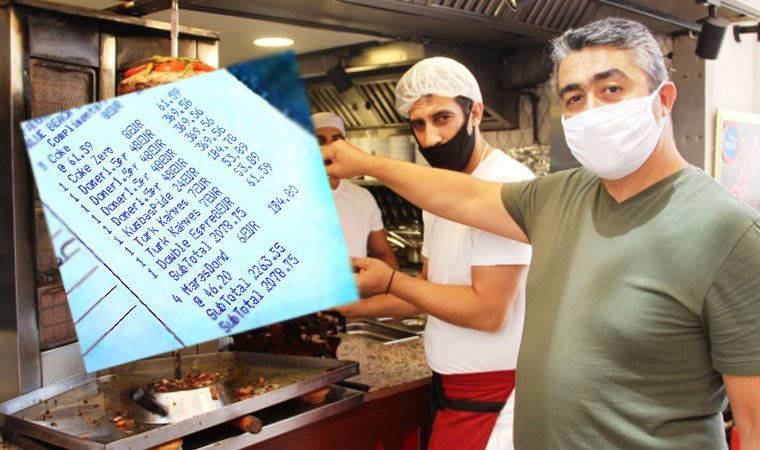Göltürkbükü Mahallesi'nde bir otelin restoranında çıkan 2 bin 263 liralık hesap Bodrum'u karıştırdı. Kolaya 61 lira, 1,5 porsiyon dönerin tanesine 369 lira, pideye 184 lira, Türk kahvesine 53 lira, kahveye 61 lira, dondurmaya 184 lira, suya 20 lira yazılması Bodrum esnafını isyan ettirdi.