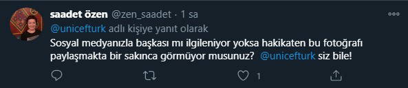 "Sosyal medyanızla başkası mı ilgileniyor yoksa hakikaten bu fotoğrafı paylaşmakta bir sakınca görmüyor musunuz? Unicef Türkiye, siz bile!"