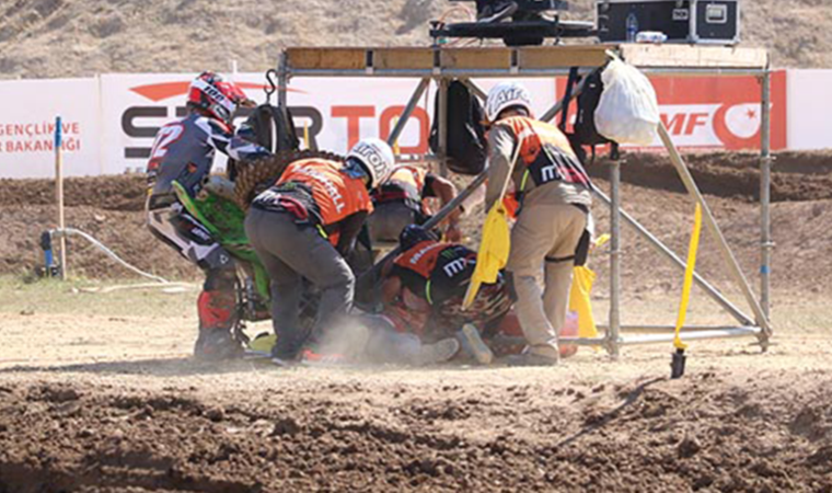 Dünya Motokros Şampiyonası'nın 8'inci etabı Türkiye'de koşulan Dünya Gençler Şampiyonası (MX2) 2'nci yarışında kaza yaşandı.