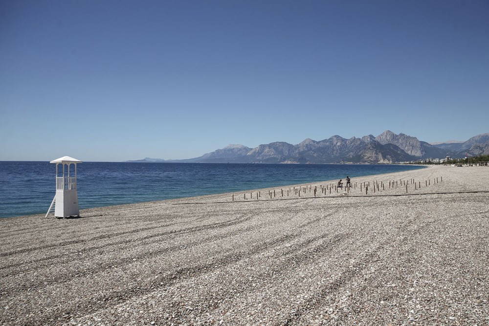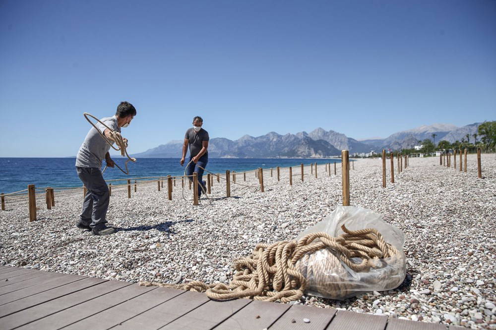 Bu kapsamda Türk turizminin amiral gemisi olarak anılan Antalya'da, her yıl milyonlarca yerli ve yabancı turistin akınına uğrayan dünyaca ünlü Konyaaltı Plajı'nda Covid-19 salgınının yayılmasını önlemek amacıyla bir dizi tedbir alındı.