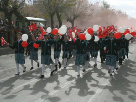 KKTC Cumhurbaşkanı Derviş Eroğlu'nun konuşma yaptığı tören, öğrencilerin ve askeri birliklerin resmi geçidiyle sona erecek.