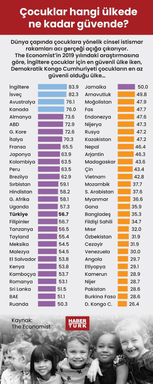 The Economist'in 2019 yılında 60 ülkeyi kapsayan çocukların güvenliğine yönelik bir araştırması bulunuyor.