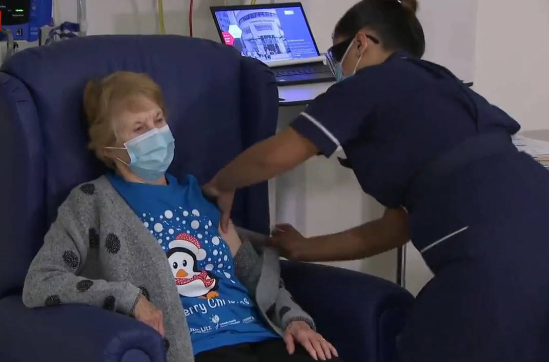 90 yaşındaki Margaret Keenan koronavirüs aşısı olurken