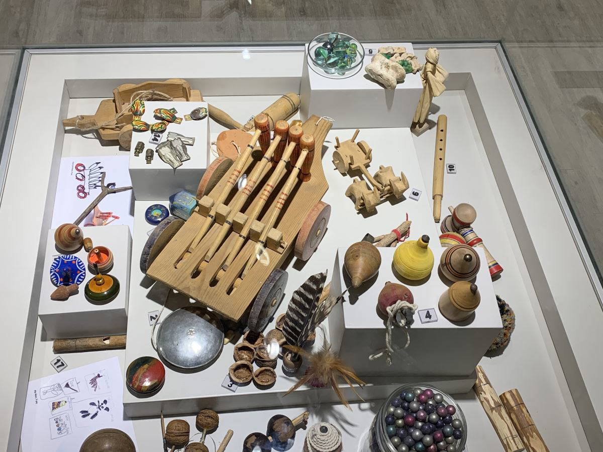 “Ulaşım” temasından, Çin Daması gibi kutu oyunlarının yer aldığı bölüme geçiliyor. Kutu oyunlarının karşısında da Anadolu’ya ait oyuncakların sergilendiği vitrin yer alıyor. Bu bölümde Çorum’dan 1988 yılına ait bir tokmaklı kağnı, 1920 yılına ait Bursa’da yapılmış bir topaç, 1936 yılında Safranbolu’da yapılmış bir çıngırak ve 50’li yıllarda Japonya’da yapılan toprak bilyeler yer alıyor. Bu bölümün hemen yanında ise müzede sergilenen en eski oyuncak olan, 1890 yılına ait Alman yapımı “bebek evi takımı” yer alıyor. Bu bölümde ayrıca, 1945 yılına ait porselen yemek takımı ve 1950 yılına ait oturma odası takımı gibi oyuncaklar da yer alıyor.