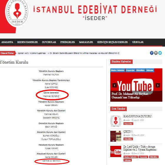 Ebubekir Sofuoğlu'na arka çıkan İSEDER isimli kuruluşun yöneticilerine bakıldığında, Sofuoğlu zihniyetinin ülkenin en köklü akademik kurumu olan İstanbul Üniversitesitesi'nde temsil edildiği görülüyor. Zira derneğin genel sekreterliğinde İstanbul Üniversitesi (İ.Ü) Felsefe Bölümü Ana Bilim Dalı Öğretim Üyesi Prof. Dr. Mehmet Günenç bulunuyor. Yine İ.Ü Tarih Bölümü Öğretim Üyesi Prof. Dr. Mehmet Ali Beyhan da derneğin Haysiyet Kurulu Asıl Üyesi olarak görev yapıyor.