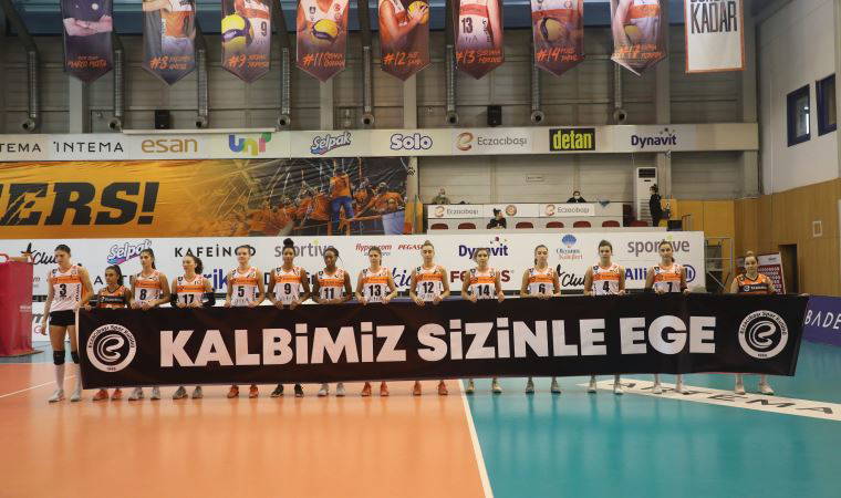 Öte yandan, formalarında siyah kurdelelerle sahaya çıkan turuncu beyazlılar, İzmir'de yaşanan depremde hayatını kaybeden ve yaşam mücadelesi veren vatandaşlarımız için "Kalbizim sizinle Ege" yazılı pankartla maç öncesi seremonide yer aldı.