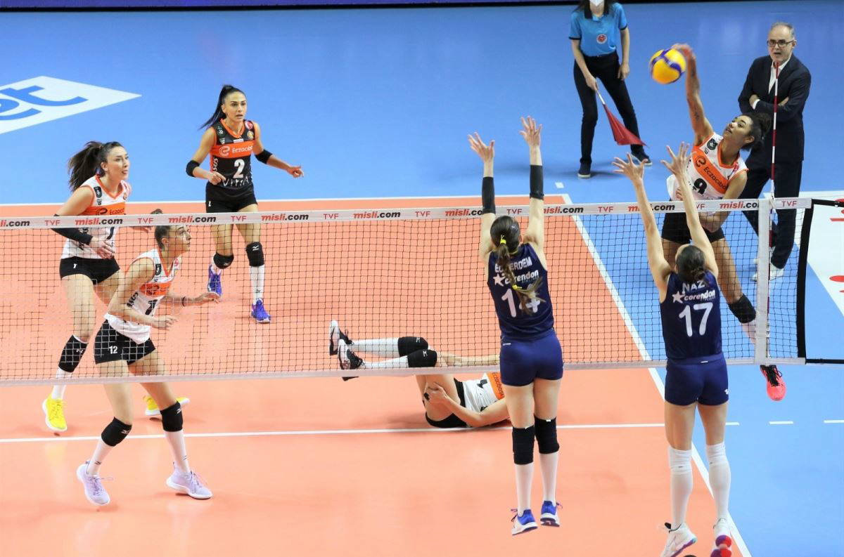 Misli.com Sultanlar Ligi Play-Off Yarı Finali’nde Fenerbahçe Opet ile deplasmanda karşı karşıya gelen Eczacıbaşı VitrA, karşılaşmadan 3-2’lik galibiyetle ayrılarak seride durumu eşitlemeyi başardı. Karşılaşmanın birinci setine Fenerbahçe iyi başlarken, Eczacıbaşı VitrA, Simge Aköz’ün etkili defansıyla seti 25-23 kazandı. İkinci sette ise Fenerbahçe, teknik mola sonrasında farkı açarak skoru 25-20’yi getirerek seriyi 1-1 yaptı. Sarı-lacivertli ekip, üçüncü seti de 25-19 kazanan taraf olurken, dördüncü sette Eczacıbaşı VitrA, 22-18 geriden gelip skoru 25-23 yaptı ve setlere eşitlik getirdi. Tie-break seti oldukça çekişmeli geçen karşılaşmada Eczacıbaşı VitrA, 19-17 kazanarak mücadeleden 3-2’lik galibiyetle ayrılan taraf oldu. Karşılaşmanın en skorer ismi 33 sayı bulan Boskovic oldu. Yarı finalin üçüncü ve son karşılaşması 7 Nisan Çarşamba saat 14.00’te Fenerbahçe’nin ev sahipliğinde Burhan Felek’te oynanacak.