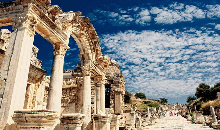 Helenistik ve Roma dönemlerinin görkemli şehri Efes, kapılarını açtı. Geçen yıllarda aynı anda 5 bin ziyaretçinin gezdiği Efes’in ziyaretçi sayısı, giriş bölümlerindeki turnikelerden takip edilecek. Antik çağın Anadolu başkenti olan ve tarihte nüfusu 200-250 bine ulaşmış Efes’in 650 üzerindeki ziyaretçileri sosyal mesafe kuralları uyarınca bekletilecek. Tüm ören yerlerinde olduğu gibi maskesiz ziyaretçi alınmıyor, girişte ateş ölçümü yapılıyor.