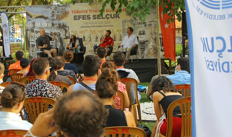 İzmir'in Efes Selçuk Belediyesi ev sahipliğinde, Türkiye Tiyatrolar Birliği ve İzmir Büyükşehir Belediyesi iş birliği ile "Tiyatro Özgürleştirir" sloganıyla düzenlenen 14. Türkiye Tiyatro Buluşması devam ediyor.