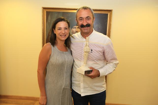 Birbirinden renkli etkinliklerle devam eden festival kapsamında Tunceli Belediye Başkanı Fatih Mehmet Maçoğlu Efes Selçuk’a konuk oldu. Gerçekleştirdiği icraatlarla adını tüm Türkiye’ye duyuran, “komünist başkan” olarak bilinen Başkan Maçoğlu, Başkan Sengel ile makamında bir araya geldi. Maçoğlu siyasette gençleri ve kadınları görmekten duyduğu memnuniyeti dile getirerek; “Dünyayı kadınlar yönetsin. Biz erkekler en az yarım asırdır devrim için uğraştık ama başaramadık. Bu yüzden kadınların belediye başkanlıklarını ele geçirdiği bir dünyaya gidiyoruz. Bu da bizi sevindiriyor” dedi. Makam ziyaretinin ardından her iki başkan EFEST’İN renklerinden olan stantları ve yerel lezzetler sokağını gezdi. Her iki başkan da vatandaşların yoğun ilgisiyle karşılaştı.