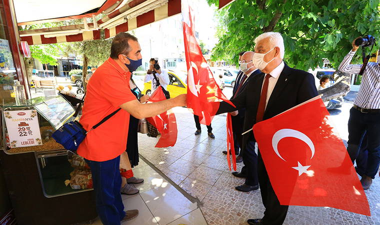 Muğla Büyükşehir Belediye Başkanı Dr. Osman Gürün, kutlamalarını daha renkli hale getirmek adına ev ve iş yerlerine Türk Bayrağı dağıttı.