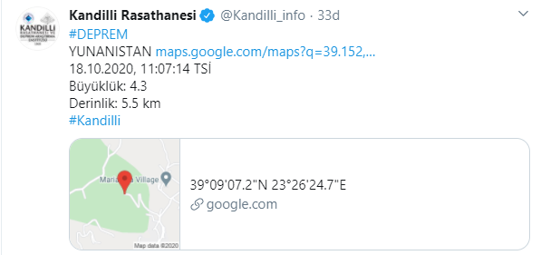 Merkez üssü Ege Denizi olan Çanakkale Gökçeada açıklarında 4.3 (Mw) büyüklüğünde bir deprem meydana geldi.