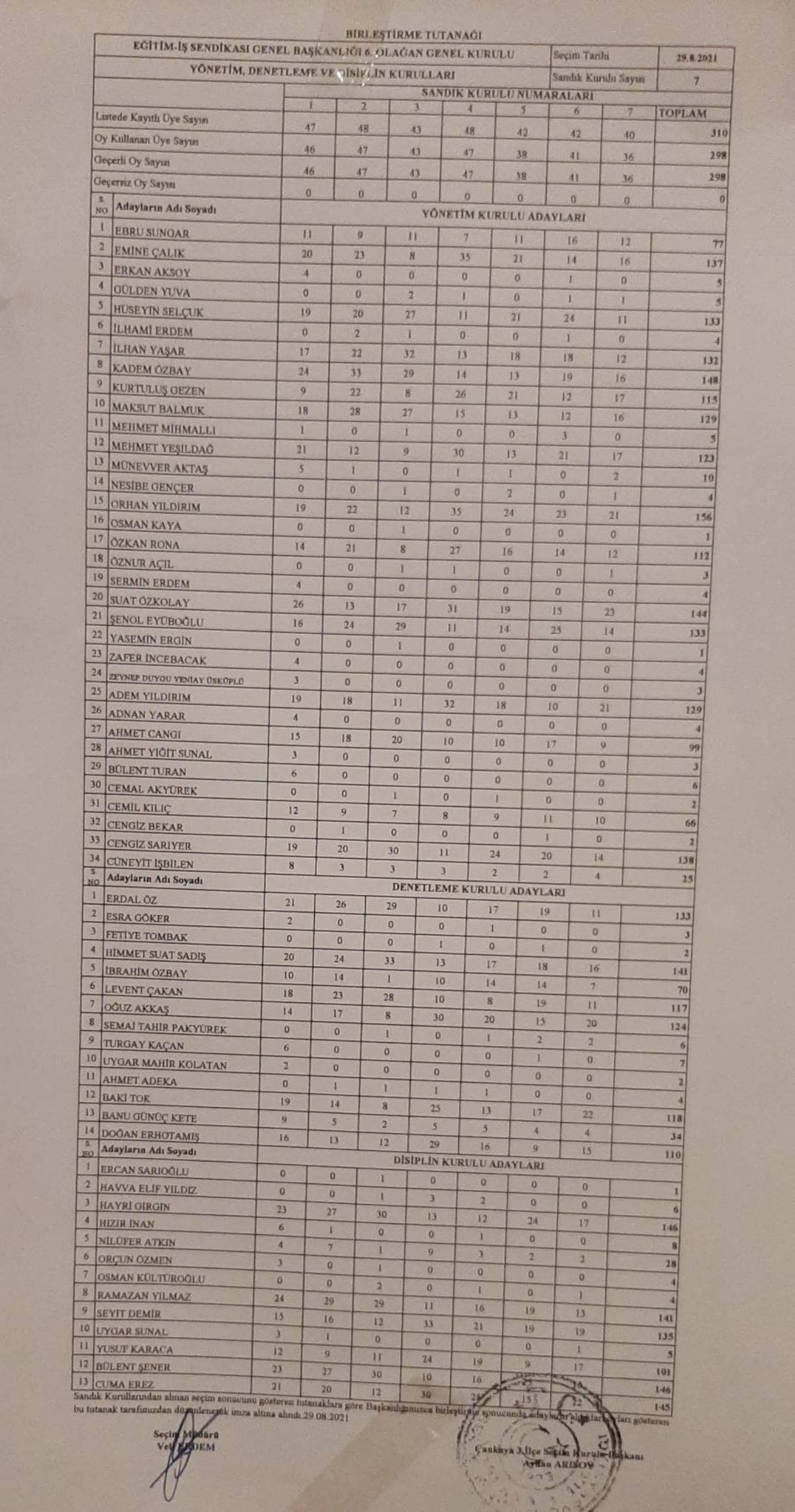 Farklı listelerin ve bağımsız adayların yer aldığı genel kurulda, Genel Başkan Orhan Yıldırım, en çok oyu alarak yeniden yönetime seçildi. Eski yönetimde Genel Eğitim Sekreteri olarak görev yapan Suat Özkolay da yeni yönetimde yer aldı.