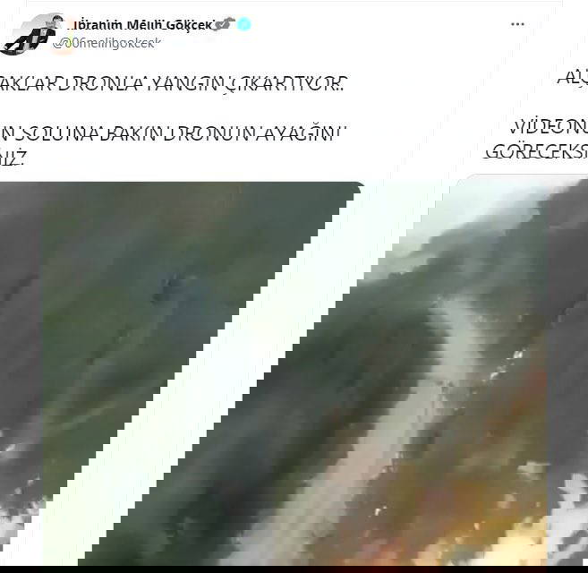 Eski Ankara Büyükşehir Belediye Başkanı Melih Gökçek, sosyal medya hesabından video paylaşmış ve "Alçaklar dronla yangın çıkartıyor. Videonun soluna bakın dronun ayağını göreceksiniz" demişti.