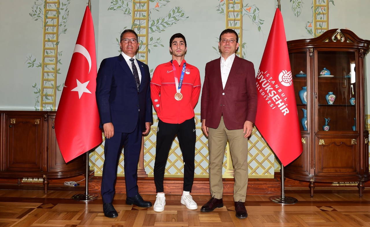 Ekrem İmamoğlu, Tokyo Olimpiyat Oyunları’nda ter döken İstanbul BBSK’li güreşçiler Cenk İldem, Kerem Kamal, Osman Göçen, karateciler Serap Özçelik Arapoğlu, Uğur Aktaş, Meltem Hocaoğlu Akyol, tekvandocular Nur Tatar, Nafia Kuş, Hakan Reçber, judocular Mihael Zgank, Vedat Albayrak, Mihraç Akkuş, badmintoncu Neslihan Yiğit ve atlet Ertan Özkan’a berat ile çiçek takdim etti.