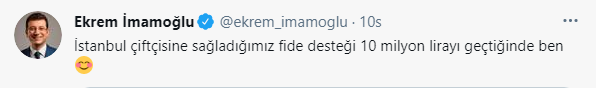 İmamoğlu'nun, Twitter hesabından yaptığı paylaşım şöyle: