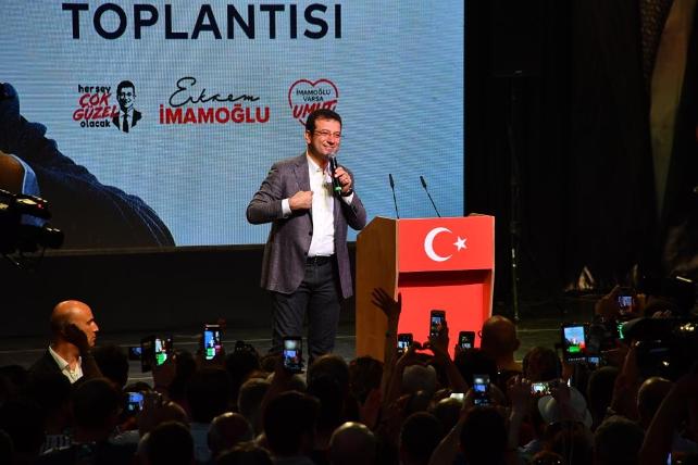 Ekrem İmamoğlu, Kadıköy’deki Bostancı Gösteri Merkezi’nde düzenlenen ‘Kampanya Koordinasyon Toplantısı’nda İstanbul Gönüllüleriyle bir araya geldi. Salona “ Her şey çok güzel olacak” ve “İmamoğlu varsa umut var” yazılı pankartlar, Türk bayrağı ve Atatürk’ün fotoğrafı asıldı. İmamoğlu’na Kadıköy Belediye Başkanı Şerdil Dara Odabaşı eşlik etti. Burada konuşan İmamoğlu, “Siz değerli İstanbul Gönüllüleri’nin de katkılarıyla harika bir kampanya yönettik. Birileri kentin yaşayanlarına başka sıfatlar takarken, biz, ‘Herkes bizim, İstanbul İttifakı’nın adayıyız. Benden olan-olmayan diye ayıran bir siyasi anlayışın karşısında, biz; 16 milyon vatansever, 82 milyon vatansever’ dedik. Kimseyi dışarıda bırakmadık. Bu pozitif dil, milletin kalbinde taht kurdu. Bana bu yolda, toplumla siyaset üstü bir dil kurmama en büyük fırsatı tanıyan, İstanbul Gönüllüleri’siniz” dedi. 31 Mart seçim günü gecesi Anadolu Ajansı’nın veri akışını durdurduğunu anımsatan İmamoğlu, “Sizlerin katkılarıyla, sandıklarda muhalefet partililerin ve tabii ki İstanbul Gönüllüleri’nin bilgi akışlarıyla inanılmaz bir çalışma ortaya koyduk ve hep beraber hakkımızı yedirtmedik. Yine, ‘Atı alan Üsküdar’ı geçti’ diyeceklerdi, dedirtmedik. 31 Mart gecesi ve sonrasındaki sandık sürecinin her anında, sandığın demokrasinin teminatı olduğunu gören halkımız, sürece sahip çıktı. Bu sürecin kahramanları var” diye konuştu. YSK’nin gerekçeli kararını eleştiren İmamoğlu, “YSK denen bir avuç insan, bu sürece en büyük sıkıntıyı veren o anlayışa karşı, çok donanımlı hareket edeceğiz. Kimsenin aklına gelmeyecek uydurma gerekçelerle, hakkımızı gasp ettiler. Demokrasiyi sıkıntıya soktular. Ama yılmayacağız. 23 Haziran’a giderken, bayrama gider gibi sandık mücadelesi vereceğiz. Bu kötü boksörler kavga etmek istiyor. Onları ringde tek başına bırakacağız. Ondan sonra kendi ringde tek başına kaldığında kendileriyle kavga etmeye başlayacaklar” dedi.