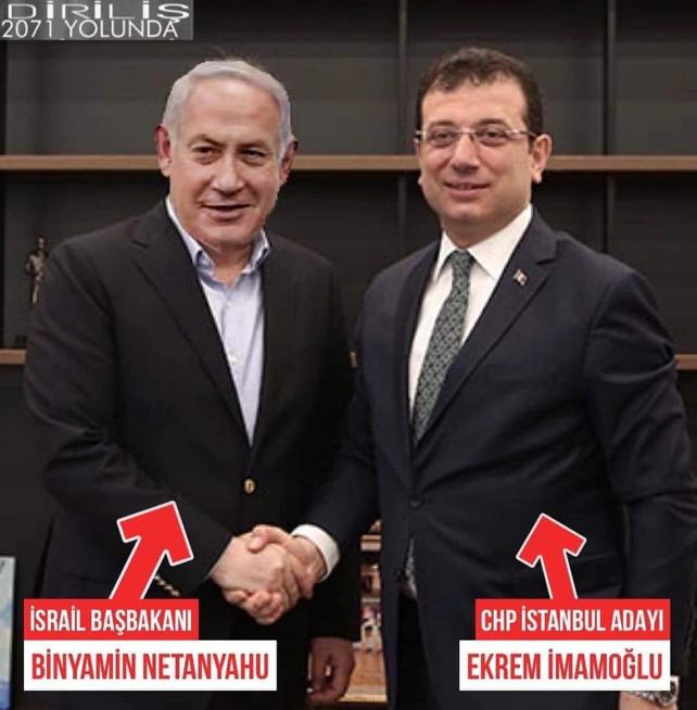 Sosyal medyada paylaşılan iki ayrı fotoğrafın birinin Ekrem İmamoğlu’nun İsrail Başbakanı Benjamin Netanyahu ile el sıkıştığını, diğerininse İmamoğlu’nun bir grup hahamla görüştüğünü gösterdiği iddia edildi.