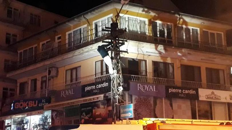 Cezaevinden yeni tahliye edildiği, eşi ile çocuklarını göremediği için direğe çıktığı ileri sürülen Önder Y.'yi indirmek için çabalayan polis ekipleri, başarılı olamayınca yakınlarına haber verildi. Olay yerine gelen yakınları, Önder Y.'yi ikna etmek için uzun süre uğraş verdi. İkna olmayan Önder Y. için ekipler çalışma ekipleri çalışma başlattı. Direğin altına branda açan itfaiye, merdivenli araçta Önder Y.'nin bulunduğu yere çıktı. İtfaiyenin müdahalesine sinirlenen Önder Y., direğin tepesine çıkıp, aşağı sarkmaya başladı.