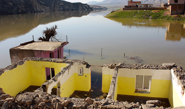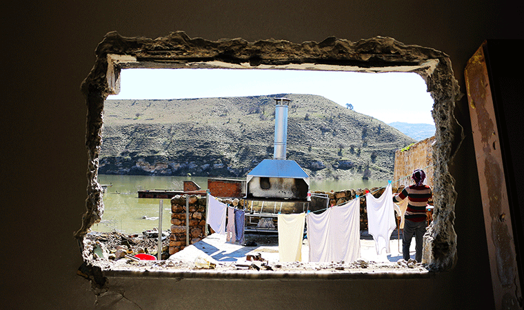 Hayalet şehre dönen Hasankeyf’in ıssız sokaklarını adımlarken Piyanist filmi canlanıyor zihnimde. Yıkılmış evlerden, can havliyle taşınanların soruları yankılanıyor kulağımda: “Bu vahşet niye?” Kaymakamlık kararıyla girişi yasaklanan ilçede, kapıları, pencereleri sökülmüş evler var, içeriye süzülüp anılara misafir oluyorum. Her pencere yıkıma açılıyor, her kırık cam sürgünün acısını yansıtıyor. Bir umutla yeni boyanmış duvarlar, vazosuyla terk edilmiş çiçekler, tozlanmış kitaplar... Sandalyeler ziyaretçilerini bekleye dursun, dilek ipi artık boş. Penceresiz ve kapısız kalsa da evler, çığlığına ses olanları, tekerrür eden Nuh tufanına rağmen hatırlamış. Geride kalmış ve sular altında kalacak onca anı arasında Sezen Aksu’nun posteri gözüme çarpıyor, üzerindeki ‘Gülümse hadi gülümse. Bulutlar gitsin’ sözleriyle. Bu acıyı unutmak ya da bu acıyla yüzleşmemek için bırakıldığı o kadar belli ki...