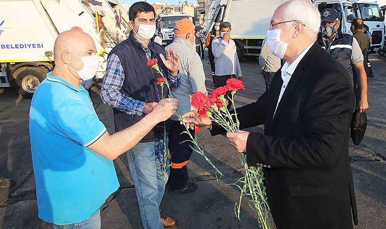 Başkan Selvitopu 1 Mayıs'ı, salgına karış en ön safta mücadele veren temizlik işçileriyle birlikte kutladı. Saat 07.00'deki mesai öncesi Temizlik İşleri Müdürlüğü'nün Uzundere'deki şantiyesine gelen Başkan Selvitopu, teşekkür ettiği işçilere kırmızı karanfiller verdi. Kutlamada DİSK'e bağlı Genel İş Sendikası 5 No'lu Şube Başkanı Ali Haydar Kara ve belediye başkan yardımcıları da yer aldı.