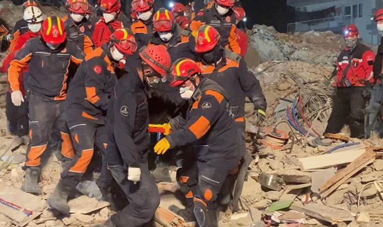 İzmir'de meydana gelen 6.6 büyüklüğündeki depremin ardından yıkılan Emrah Apartmanı'nda enkaz altında kalan bir kişinin cansız bedenine ulaşıldı. Ekiplerin çalışması sonucu, kimliği henüz belirlenemeyen cesedin, bir erkeğe ait olduğu öğrenildi.