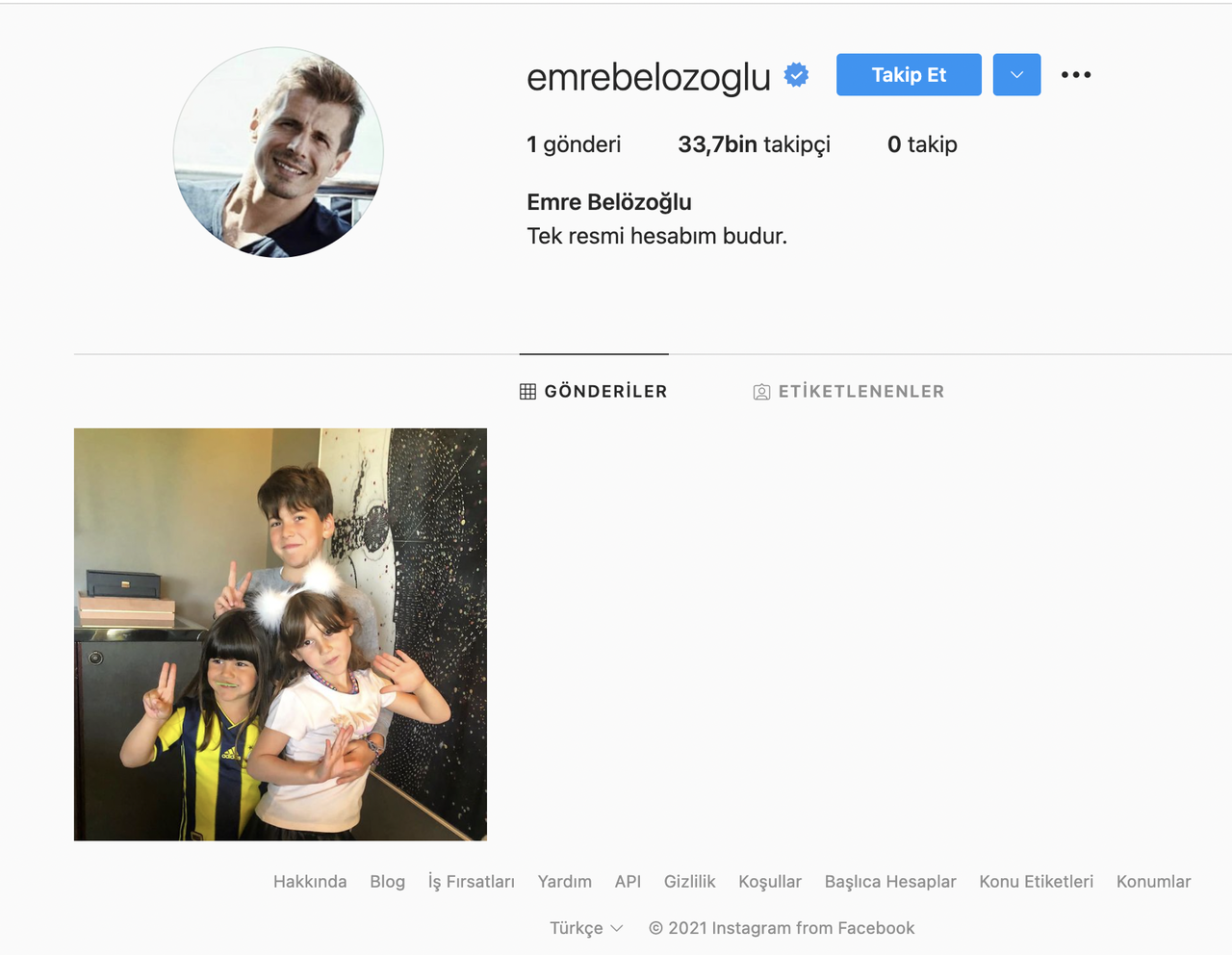 Fenerbahçe'deki teknik sorumluluk görevinden ayrılan eski futbolcu Emre Belözoğlu, sosyal medya platformu Instagram'da resmi hesap açtı. Hesabının açıklama kısmına "Tek resmi hesabım budur" ifadesini ekleyen Belözoğlu'nun hesabı, kısa sürede 33 bin takipçiye ulaştı.