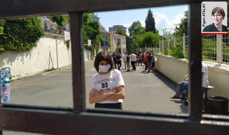 Hepsi maskeli olan çocuklar önce sosyal mesafeye dikkat ettiyse de bir süre sonra arkadaşlarıyla gruplar halinde toplanmaya, okul kapısının ardından kendilerini çağıran anne-babalarının yanına gelmeye başladı. Görevliler sürekli “maskenizi çıkarmayın, sosyal mesafenizi koruyun’’ anonsları yaptı. Velilere yapılan “kapı önünde kalabalık oluşturmayın’’ uyarısı ise hiç işe yaramadı. Maskeler çıkarılmadı ama hem oturum arasında bahçeye çıkan çocuklar hem de onları bekleyen veliler açısından sosyal mesafeye uyulduğu da söylenemez.