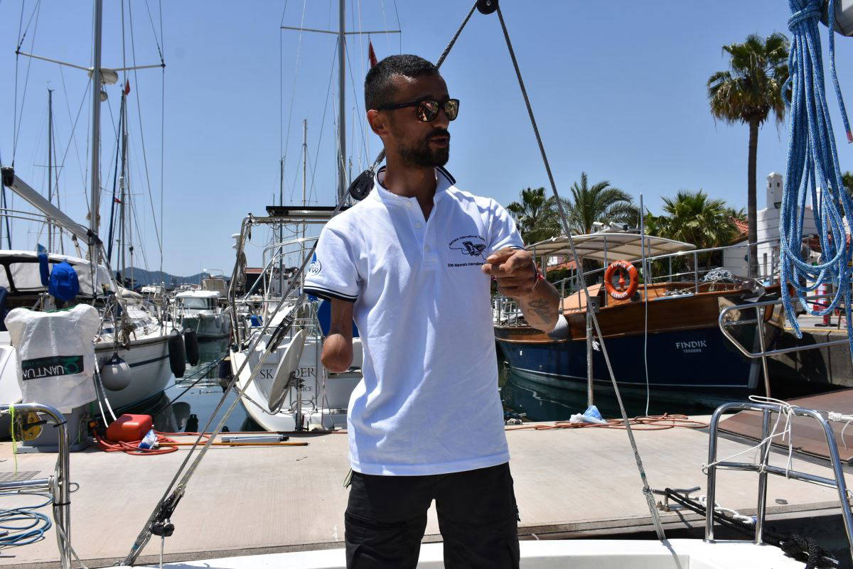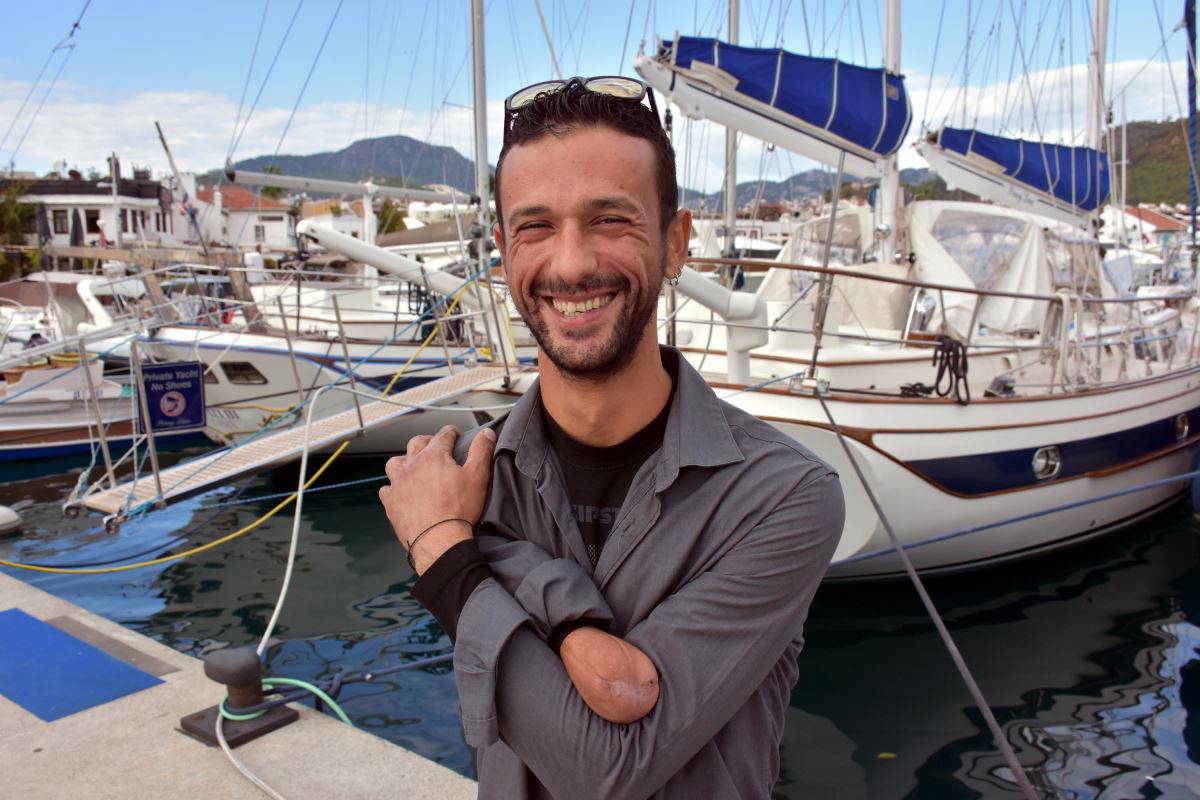 Marmaris İlçe Sağlık Müdürlüğü ve Aile Toplum Sağlığı Bölümü'nde memur olarak çalışan Hüseyin Akbulut (33), 8 yaşındayken elektrik akımına kapılarak sağ kolu dirsek altından ampute edilmesine rağmen yaşamdan hiç kopmadı.