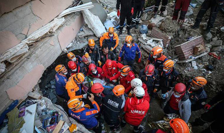 Seferihisar açıklarında dün meydana gelen 6.6 büyüklüğündeki depremde, ilk 3 katı çöküp yan yatan 11 katlı Yılmaz Erbek Apartmanı'ndaki arama -kurtarma sırasında çökme yaşanmaması için binaya vinçler ile destek sağlandı.