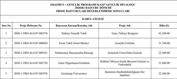 Dışişleri Bakanlığı AB Başkanlığı Türkiye Ulusal Ajansı, “Gençlik Diyaloğu Programı” kapsamında destek talebi kabul edilen kurum ve projeleri açıkladı.