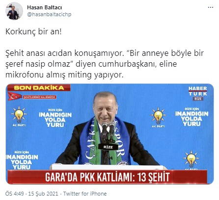AKP'li Cumhurbaşkanı Recep Tayyip Erdoğan, partisinin Yenişehir Kapalı Spor Salonu'nda düzenlenen Rize 7. Olağan İl Kongresi'nde Irak'ın kuzeyindeki Gara bölgesinde 13 vatandaşın şehit edilmesiyle ilgili konuştu.