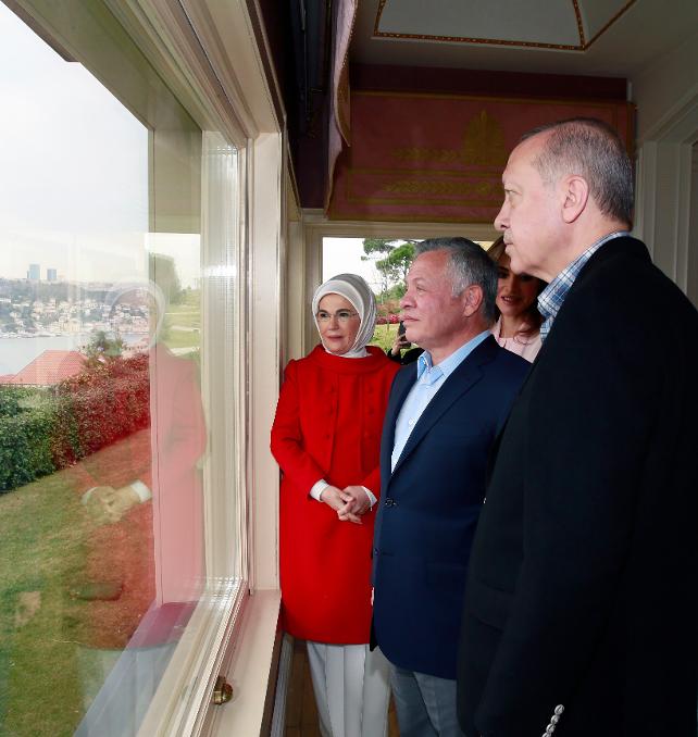 Türkiye'yi ziyaret eden Ürdün Kralı 2. Abdullah ve eşini dün akşam Tarabya Köşkü'nde ağırlayan Cumhurbaşkanı Erdoğan bu sabah da Çengelköy'deki Vahdettin Köşkü'ne geçti.