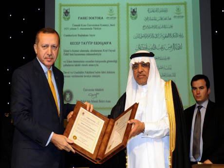 Başbakan Erdoğan, Mekke Ümmü'l-Kurra Üniversitesince fahri doktora unvanı verilmesi adına düzenlenen törende konuşan Erdoğan, başbakanlığı süresince gerek Türkiye'nin değişik üniversitelerinden, gerek Türkiye dışındaki birçok üniversiteden kendisine fahri doktora unvanları tevdi edildiğini belirterek, ''Elbette her birisinden dolayı büyük gurur duydum. Ancak, bugün burada tevdi edilen fahri doktora unvanı benim için çok farklı bir anlam taşıyor ve çok farklı bir gururu, heyecanı yaşamama vesile oluyor'' dedi.