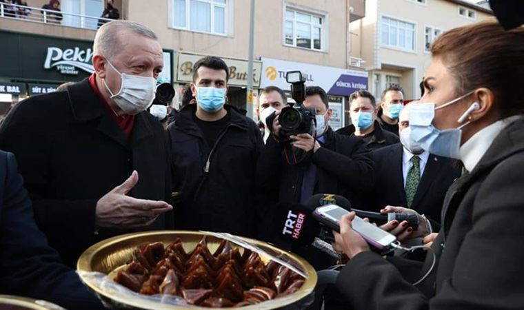 Erdoğan ikram sırasında sucuk ve pestilin koronavirüsten kurtulmayı sağladığını söyledi. AKP'li Cumhurbaşkanı, "Bununla beslenin ki Covid'den kurtulun bak ona göre. Bu çok çok faydalı. Bunu yiyen Covid movid..." dedi.