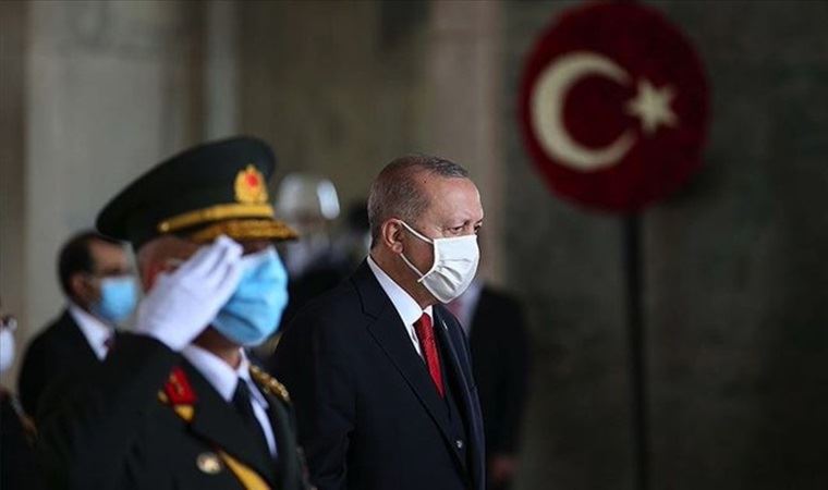 Erdoğan'ın beraberinde TBMM Başkanı Mustafa Şentop, bakanlar, CHP Genel Başkanı Kemal Kılıçdaroğlu, MHP Genel Başkanı Devlet Bahçeli, İYİ Parti Genel Başkanı Meral Akşener ve yüksek yargı üyeleri de Anıtkabir'deki törene katıldı.