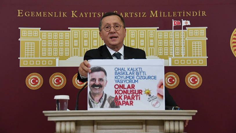 - Başkanlık sistemi için 2017 referandumuna bu afişle gittiler. OHAL kalkacak dediler. Köylere özgürlük gelecek dediler. Bırakın köyleri 81 ilin artık tamamında OHAL var. 2018'de 24 Haziran seçimlerine giderken sıkı yönetim uygulaması son buluyor dediler. Geldiğimiz noktada tek adam sistemi getirdiler. Bu ucube yönetimle kalıcı bir sıkı yönetim ilan ettiler. İktidar partisi bu konuda samimi olsun. OHAL'i terörle mücadele etmek için mi yoksa yeni bir rejim inşa etmek için mi istiyor? Bu konuda cevaplarını bekliyoruz.