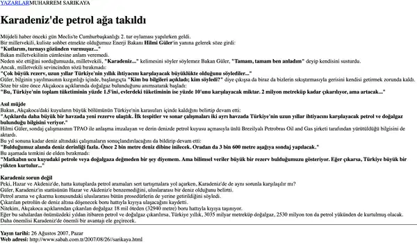 KARADENİZ’DE PETROL (26 AĞUSTOS 2007)