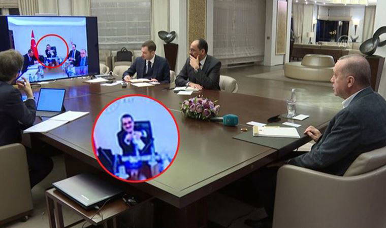 Erdoğan'ın Dışişleri Bakanı Mevlüt Çavuşoğlu, Enerji ve Tabii Kaynaklar Bakanı Fatih Dönmez ve Sanayi ve Teknoloji Bakanı Mustafa Varank ile yaptığı görüşmelerin görüntüleri paylaşıldı.