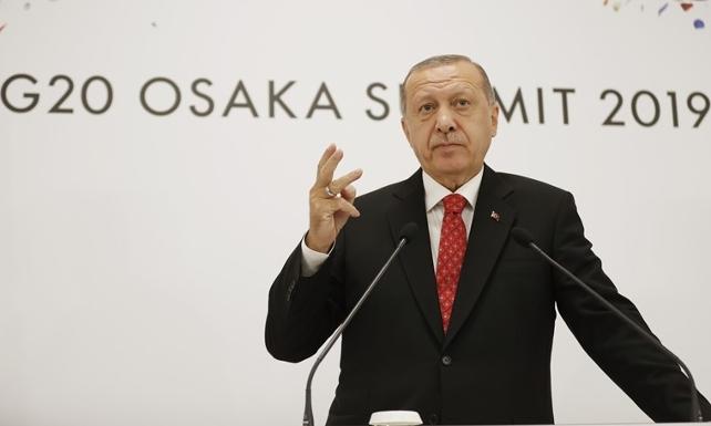 Cumhurbaşkanı Recep Tayyip Erdoğan, G20 Liderler Zirvesi'ne ilişkin INTEX Osaka Fuar Merkezi'nde düzenlenen basın toplantısında konuştu. Erdoğan, konuşmasının ardından gazetecilerin sorularını yanıtladı.