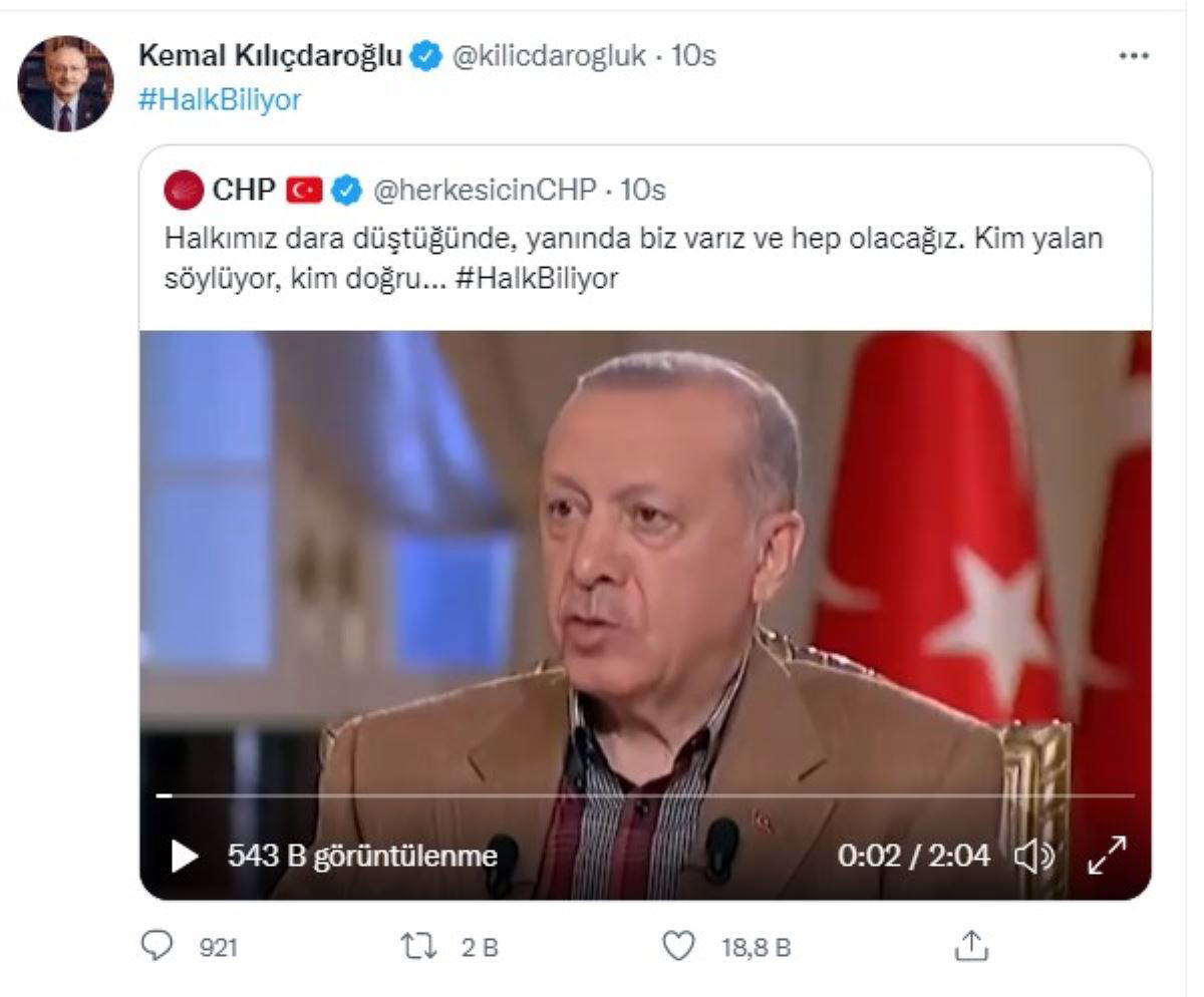 CHP Genel Başkanı Kemal Kılıçdaroğlu, CHP Genel Merkezi'nin bu paylaşımını "HalkBiliyor" etiketiyle paylaştı.