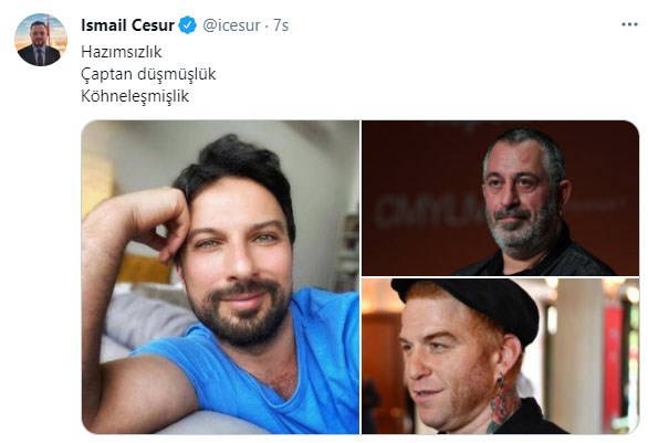 Cesur, paylaşımında üç ünlü ismin fotoğraflarına yer vererek “Hazımsızlık, çaptan düşmüşlük, köhneleşmişlik” ifadesini kullandı.