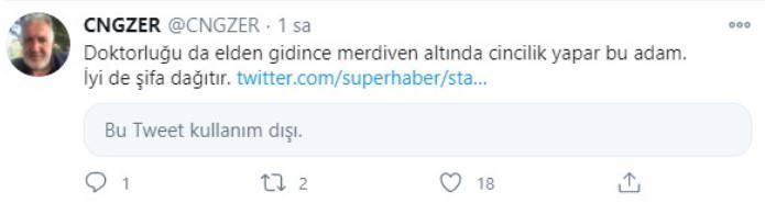 "Doktorluğu da elden gidince merdiven altında cincilik yapar bu adam. İyi de şifa dağıtır."