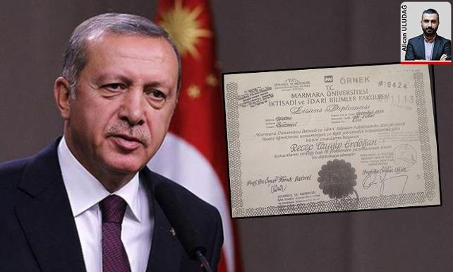 “Seven, 20 yıl önceki 12 Nisan 1994 tarih ve 10424 yevmiye numaralı noter işleminden örnek verdim diyorsa, nasıl oluyor da arka tarafına ilgili olarak ibraz ettiğim aslına uygundur şeklinde bir şerhi yönetmeliğin 95/A madesine göre vurabiliyor? Burada ilgili olarak gösterilen Hasan Tükenmez hangi diploma örneğini ibraz ediyor? Kaldı ki edemez de... Çünkü 3 Haziran 2016’da Marmara Üniversitesi Rektörü, Erdoğan’ın diplomasını kaybettiğinden bahisle 31 Mart 2011 tarihinde bir duplikat diploma talebinin olduğunu ve 1 Nisan 2011 tarihinde de kendisine duplikat verdiğini ifade etmiştir.”