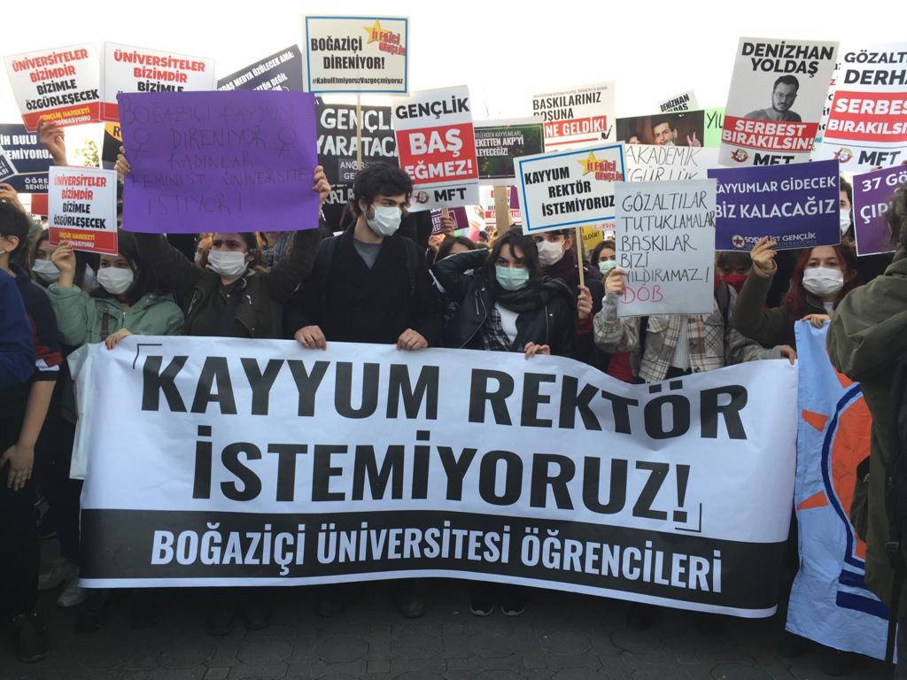 AKP'li Cumhurbaşkanı Recep Tayyip Erdoğan tarafından Boğaziçi Üniversitesi Rektörlüğü’ne AKP’li Melih Bulu’nun atanmasına yönelik tepkiler sürüyor. Boğaziçili öğrenci gruplarının eylem çağrılarının ardından İstanbul Valiliği, dün Beşiktaş ve Sarıyer’de yapılacak gösterileri 'salgın' nedeniyle yasakladı. Boğaziçi Üniversitesi öğrencileri de Rektörlük önünde gerçekleştirdikleri protestoların ardından saat 16.00’da Kadıköy Rıhtım'da yapacakları kitlesel eylem için slogan atarak Bebek kampüsünden çıkış yaptı. Bebek'ten Beşiktaş İskelesi’ne kadar 'kayyum rektör istemiyoruz' sloganları eşliğinde yürüyen öğrenciler daha sonra vapurla Kadıköy'e geçerek kendilerini bekleyen kalabalıkla buluştu. Üniversite öğrencileri, yüzlerce polisin abluka altına aldığı ve TOMA'ların bulunduğu Rıhtım Meydanı’nda ‘Yaşasın öğrenci dayanışması’, ‘Üniversiteler bizimdir’, ‘Gözaltılar serbest bırakılsın’ sloganları eşliğinde taleplerini sıraladı. Farklı üniversitelerden öğrencilerin de katıldığı eyleme akademisyenler, siyasetçiler, sanatçılar, sivil toplum örgütleri ve yurttaşlar da destek verdi.