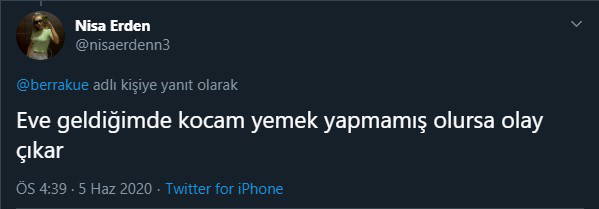 3 Haziran günü Twitter'da yapılan "Kocam isterse çalışabilir" paylaşımı, bu haber yazılırken 3 milyona yakın kullanıcı tarafından görüntülenmiş; 3 bine yakın kişi tarafından yorum yapılarak alıntılanmıştı. Paylaşımın altında da 500'ün üzerinde yorum vardı.
