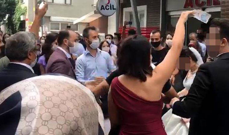 Damat ve gelin sokakta oynarken, bazı yakınları da onlara para yapıştırdı, maske ve sosyal mesafe kuralları hiçe sayıldı. Gelin ve damadın minibüse binip ayrılmasıyla da kalabalık dağıldı.
