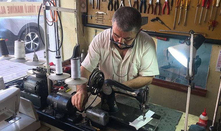 Asırlık dikiş makinelerinin yanı sıra günümüz makinelerinin tamirini de yapan Bekar, severek icra ettiği mesleğinin unutulmaması için 20 metrekarelik dükkanda mesai harcıyor.