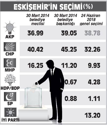 Geçen yerel seçimde Eskişehir Büyükşehir Belediye Başkanlığı’na aday olmak istemiş ama AKP yönetimi farklı bir isimde karar kılınca çekilmiş, şimdi yeniden yarışta. Eskişehir’deki seçim, temel olarak, ittifakların adayı bu iki isim arasında geçiyor.